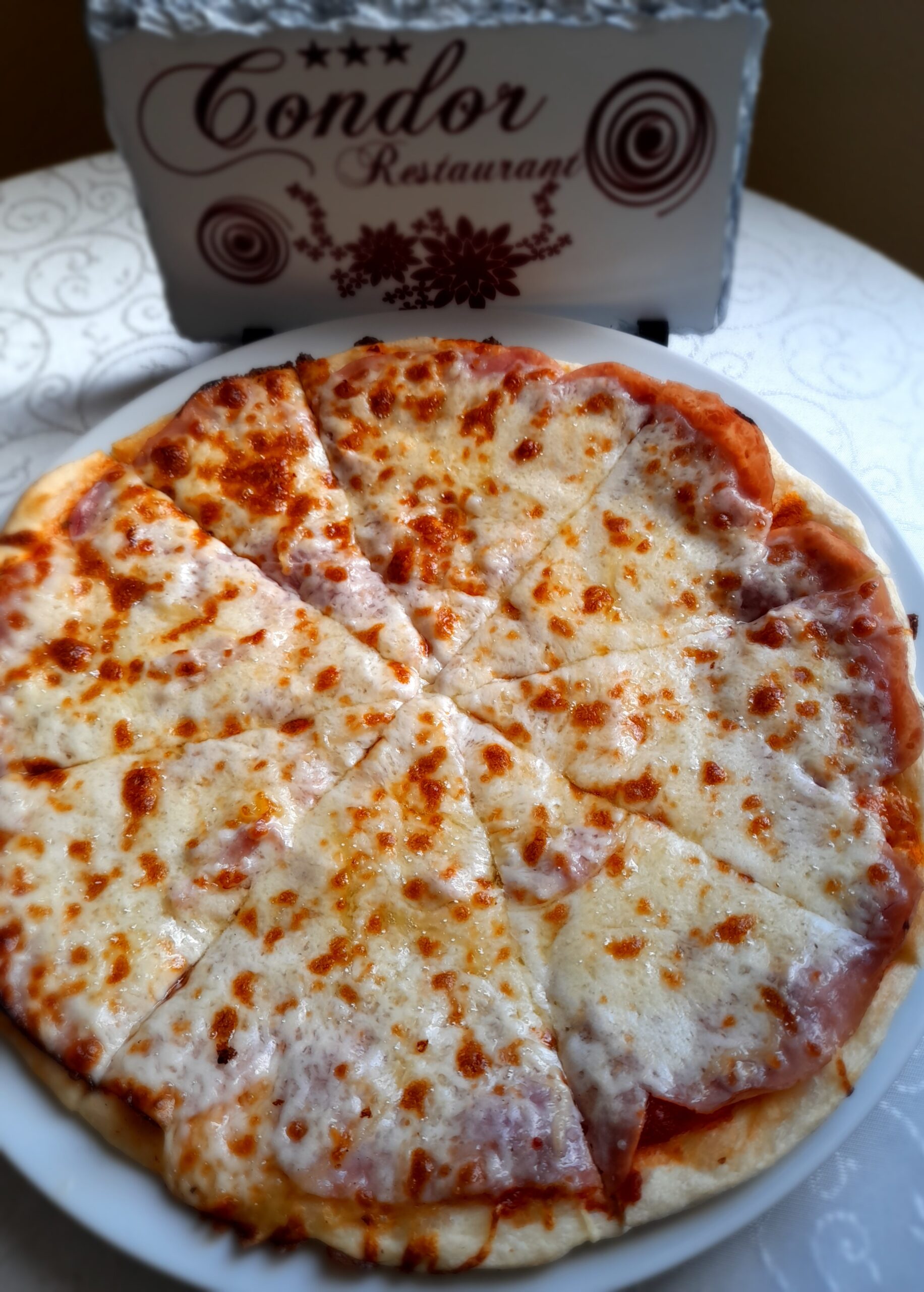 Ingrediente: Sos rosii, mozzarella, sunca. Contine gluten.
